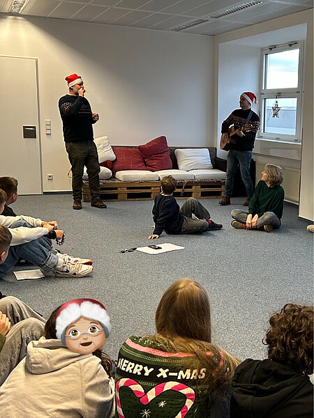 Heute wurden die Schüler/innen in der ersten Stunde überrascht mit einem Adventsgruß von unseren Musiklehrern, Herr Walf und Herr Bredien. Sie sind in jede Klasse mit einer Gitarre gekommen und haben zusammen mit den Schüler/innen „Last Christmas“ gesungen. Die Schüler/innen fanden es eine nette Idee von den Lehrern und waren passend zum 1. Advent gestern direkt in Weihnachtsstimmung.