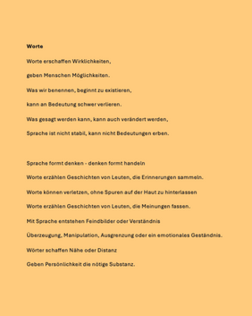 Der LK Deutsch 12 der Evangelischen Gesamtschule Kleinmachnow hat sich nicht nur mit Bedeutung und Funktion von Sprache beschäftigt, sondern auch mit der Macht von Sprache – und der Kraft einzelner Wörter.